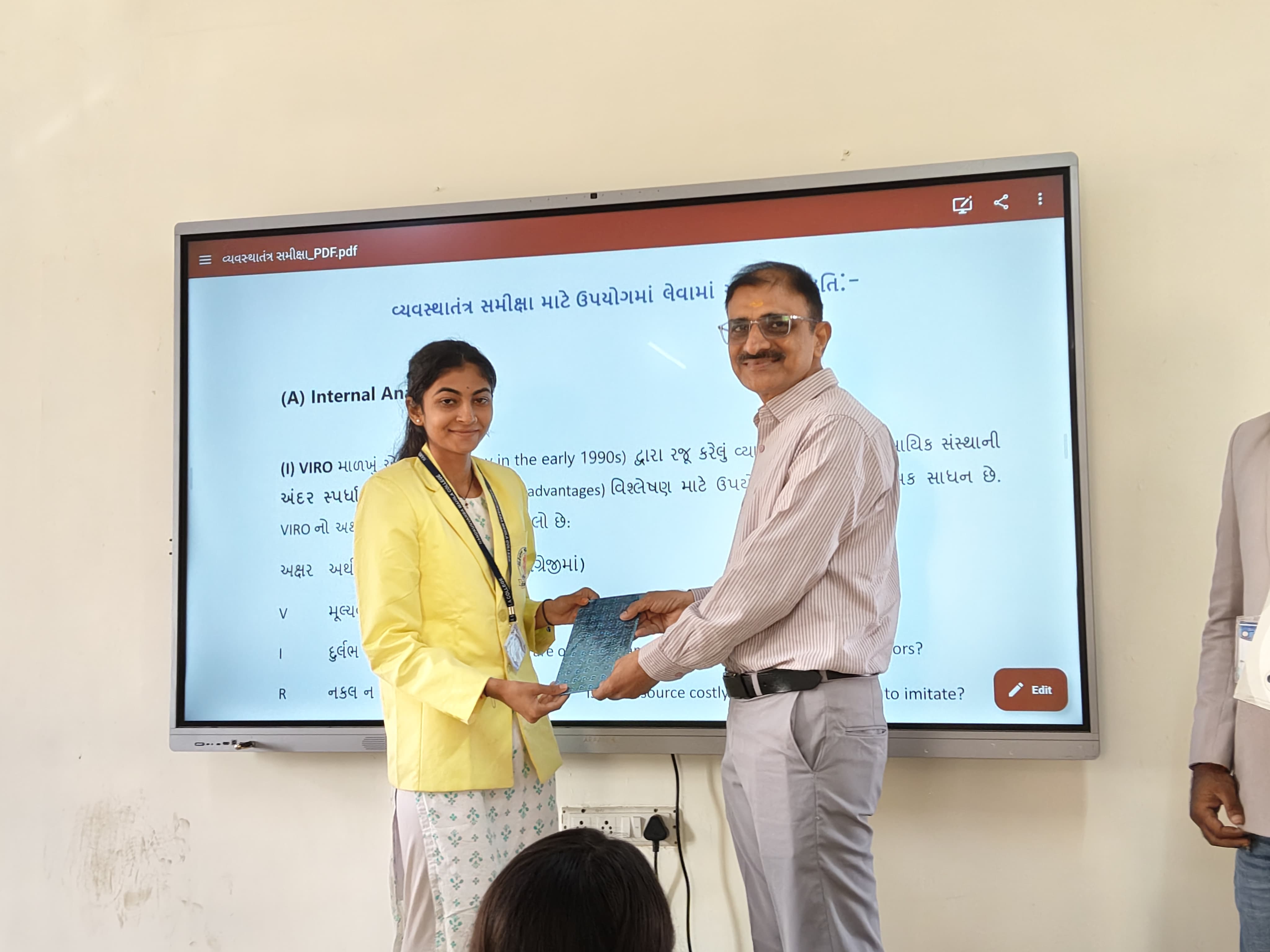 On 12th August 2025, Nandkunwarba Mahila Commerce College organized an insightful guest lecture for B.Com Semester 1 students on the topic of Strategic Management. The session was graced by Mr. Ketan N. Pandya, HRD Officer at Nirma Limited, who served as the keynote speaker.